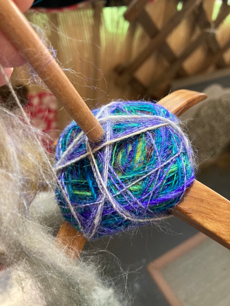Spinning on a Turkish Spindle is a great way to relax and destress. It’s so enjoyable to watch the fibers wrap around themselves as they tighten together and make yarn. It’s like watching fish in a aquarium, so relaxing!