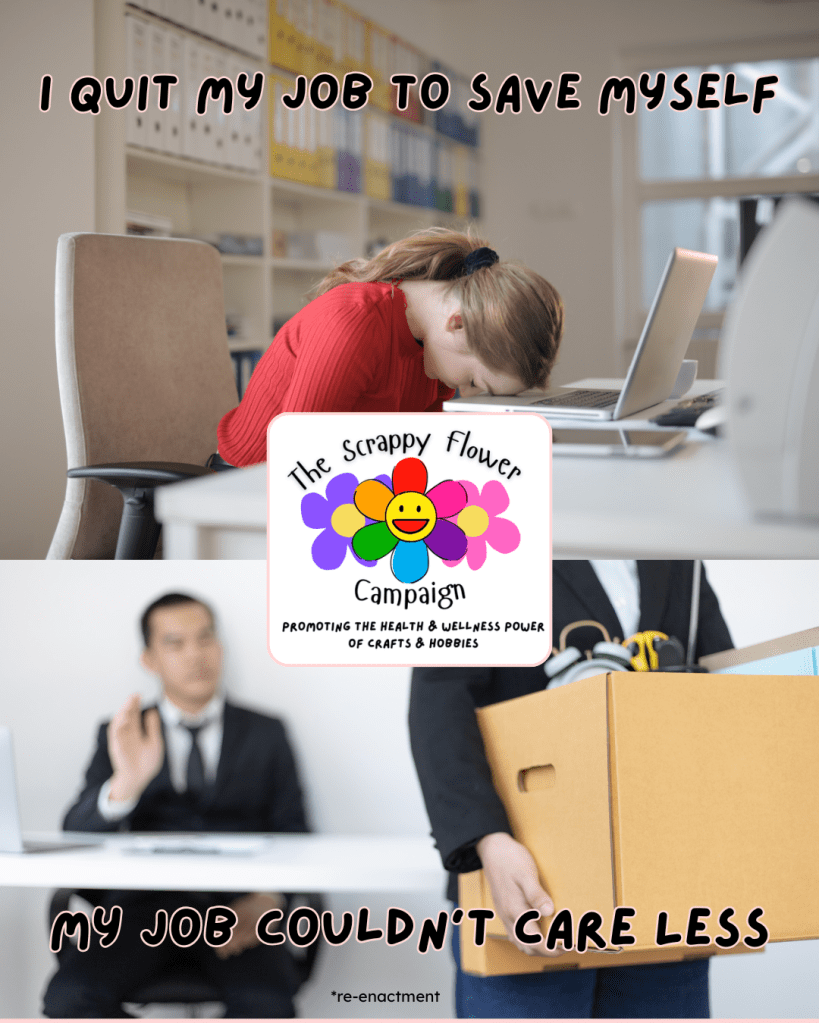 The purpose of The Scrappy Flower Campaign is to promote the health and wellness benefits of crafts and hobbies. So, here’s a little more about my stress and the health and wellness benefits I get from my hobbies and crafts.