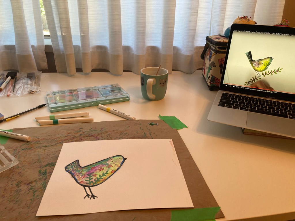 I love how cute this bird turned out. It’s definitely getting a frame and going on my wall. I had a great time learning how to watercolor paint during my mental health craft break that day: